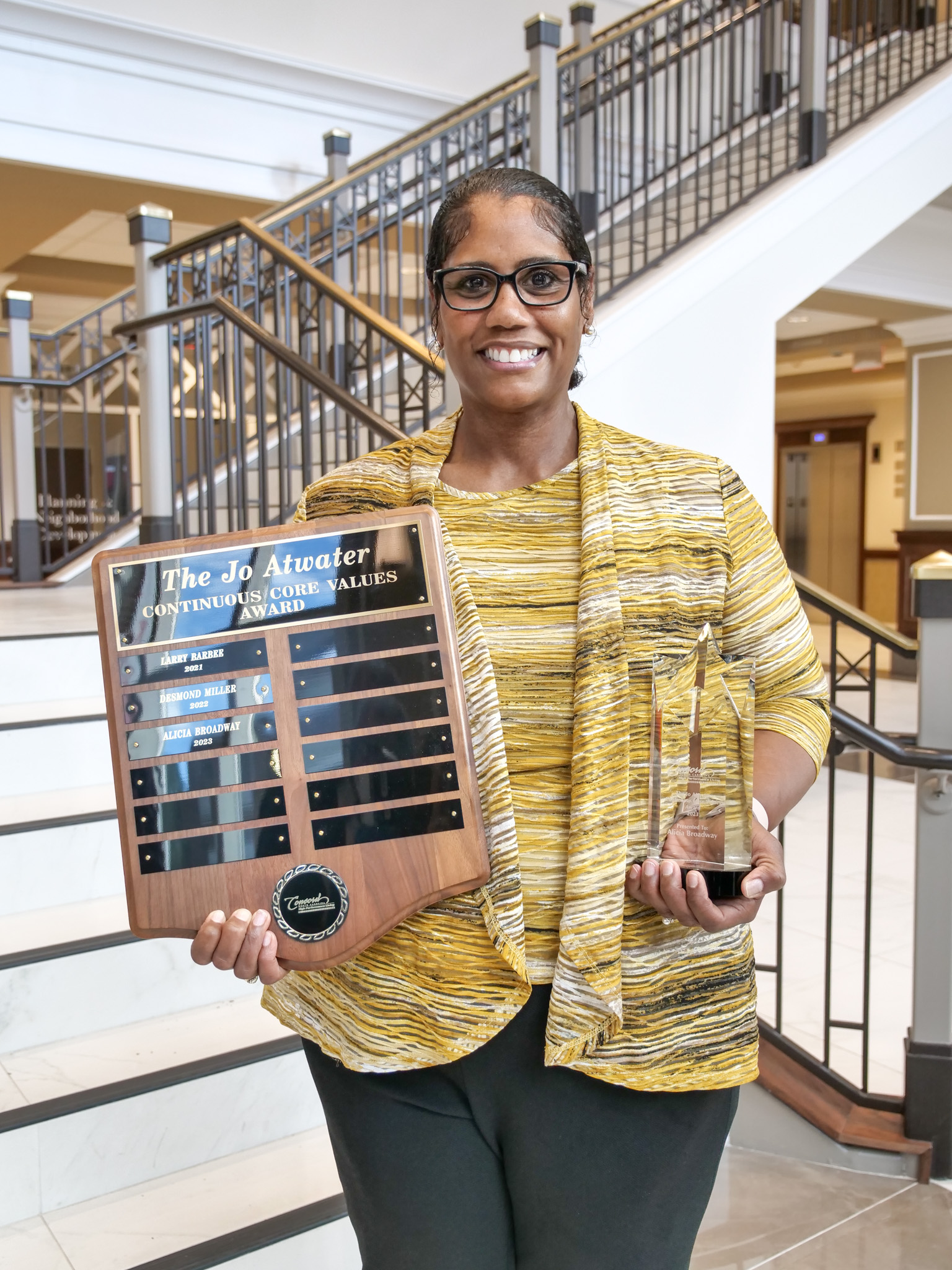 The 2023 recipient of the City of Concord’s prestigious Jo Atwater Continuous Core Values award is Alicia Broadway. This is the highest honor bestowed upon a city employee. Broadway received this honor for her outstanding dedication and exemplary service to her coworkers and the residents of Concord.